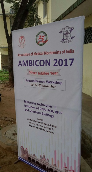 MRU, MMCRI was one of the centres identified by Association of Medical Biochemists of India (AMBI) for its 25th Annual Conference-AMBICON-2017. The National level Pre-conference workshop on Molecular Techniques was held at MRU on 15th & 16th November 2017, for Junior Faculties and Post Graduate students of Medical Colleges from all over India.