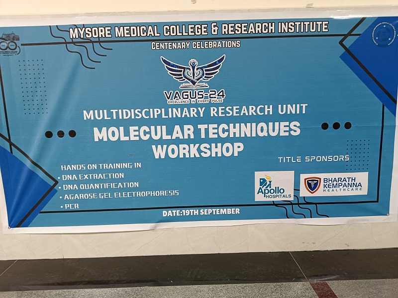 MRU, MMC & RI conducted a one-day hands on workshop on ‘molecular biology techniques’ on 1st October 2023 as a part of VAGUS 23, a UG Medical Conference for the delegates of the conference attended from different Medical Colleges of the Karnataka state.